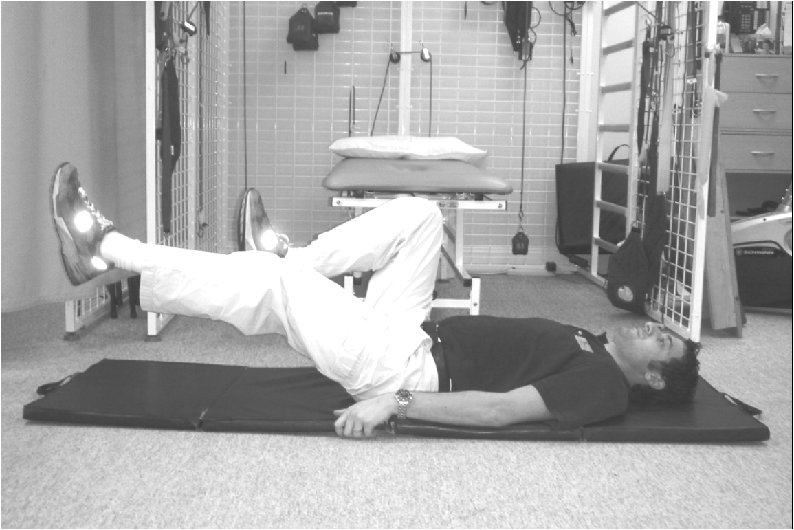 Starting position: Supine, one leg in hookline position, opposite leg extended.